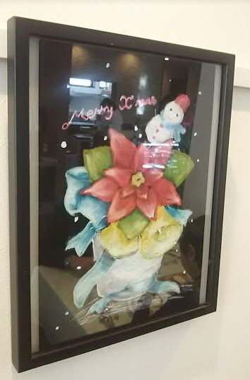 店内にクリスマスの絵を飾りました。 |
