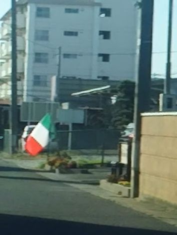 お店の入り口にイタリア国旗をおきました。 |