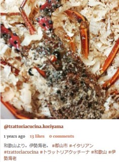本日、和歌山県から、活伊勢海老が入荷しました(^ ^)。 2018/10/19 |