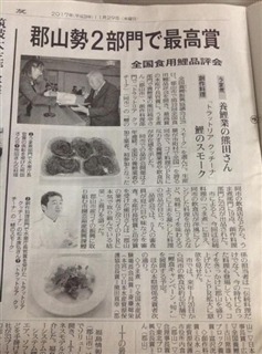 最高賞の水産庁長官賞を受賞した『鯉のスモーク』です。 |