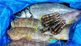 長崎県佐世保産の平スズキ、キハダ、マテ貝です。 2019/2/17