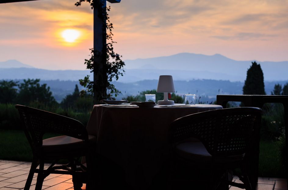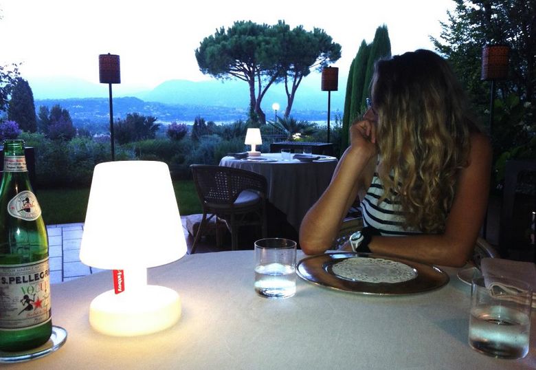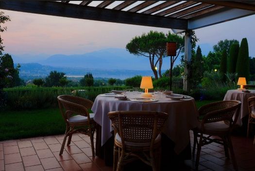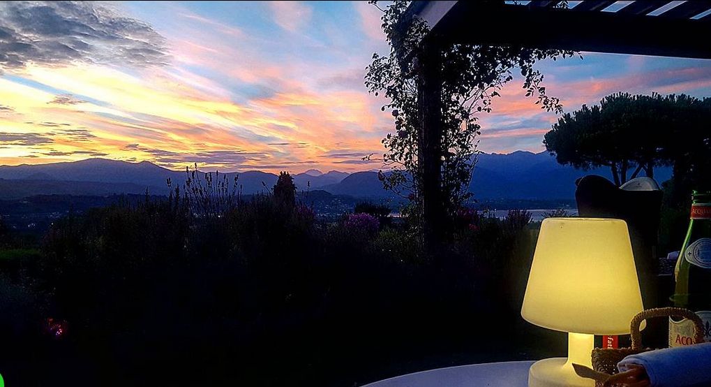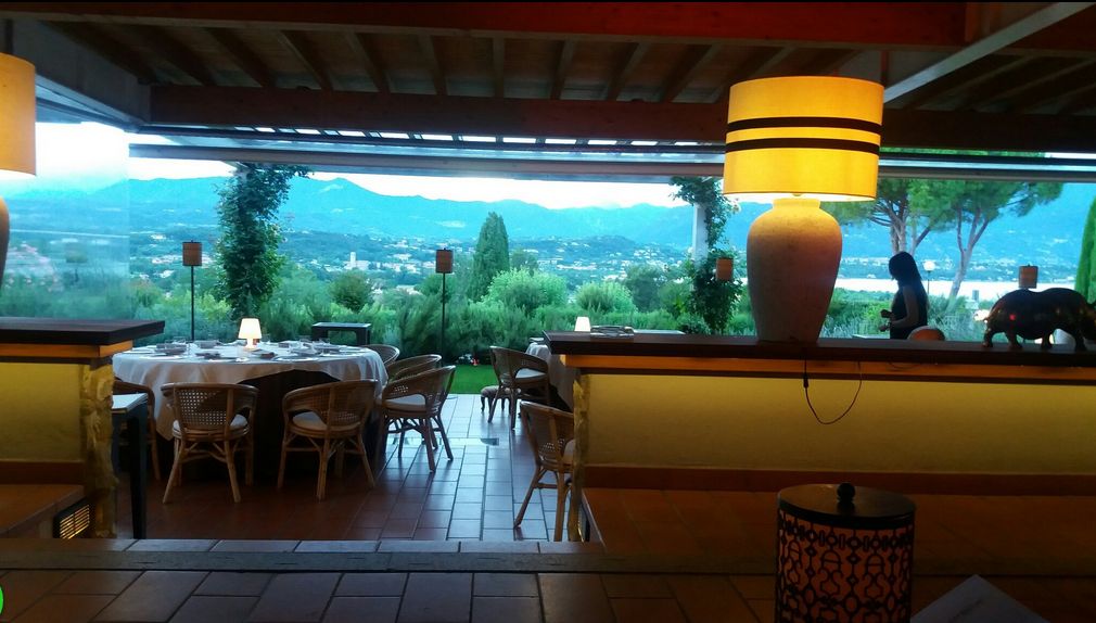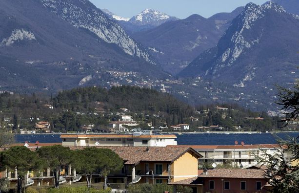 テラスからはガルダ湖とアルプスの山々が見えます。 |
