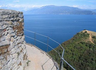 テラスからはガルダ湖とアルプスの山々が見えます。 |